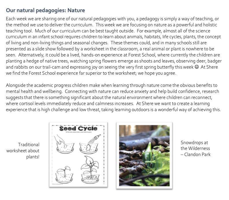 Fridays for Future is Shere School’s vision for meaningful child focused education around protecting and loving the environment. Inspired by Greta Thunberg, it involves regular days entirely themed around nature and sustainability.